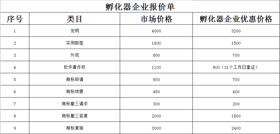 注:以上费用仅为代理费,官费根据国家局的有关规定进行收取。其他服务类费用根据具体情况面谈