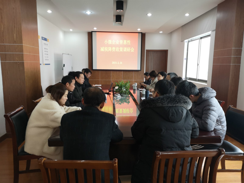 2019年2月26日上午,市财政局、税务局、经信局、开发区等部门组成小微企业减税降费调研组到黄山求卓园区开展税费政策解读调研活动。