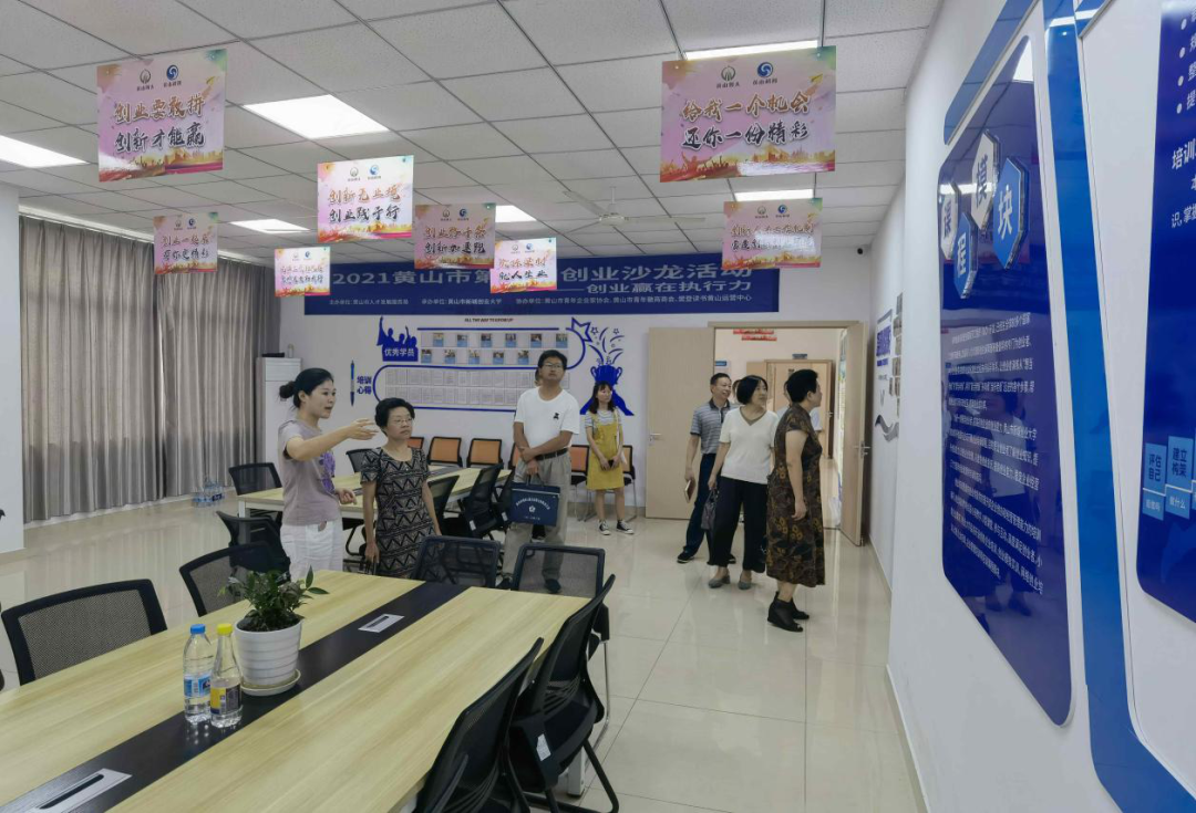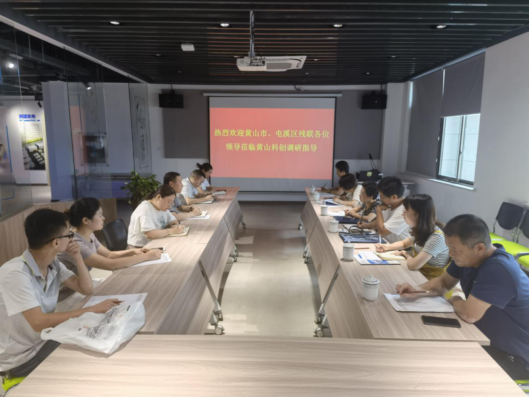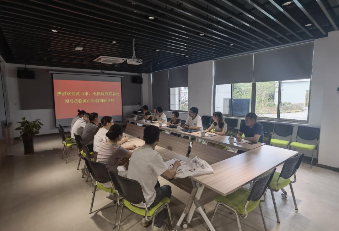 9月30日上午,黄山市残联党组成员、四级调研员朱文莉一行莅临黄山市新城创业大学、黄山科创孵化器调研创业培训孵化基地建设情况。市残联教就科科长孙晶、残疾人培训就业康复和辅具中心负责人崔瑶,屯溪区残联理事长张冰、党组成员许秋云等陪同调研,黄山市新城创业大学(以下简称:"创业大学")校长、黄山科创高新技术创业服务有限公司(以下简称:“黄山科创”)总经理江建云、业务科室负责人接待一行。