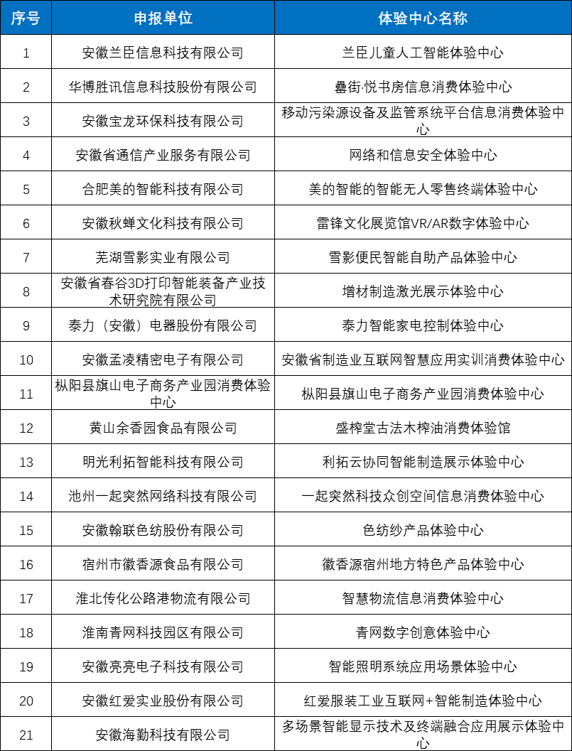 安徽省第九批信息消费创新产品和第七批信息消费体验中心名单公布
