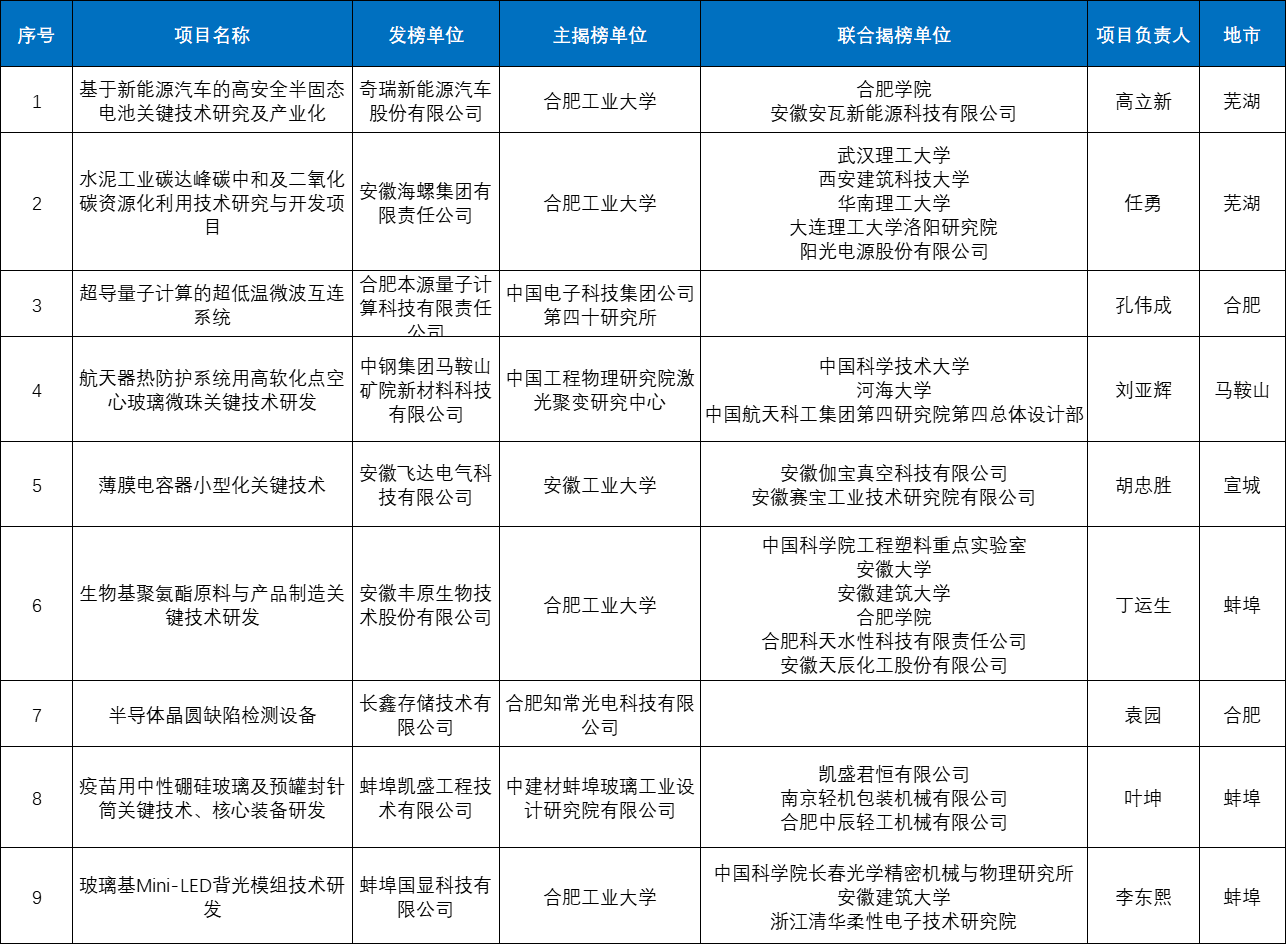 2021年度安徽省“揭榜挂帅”类专项拟立项项目清单