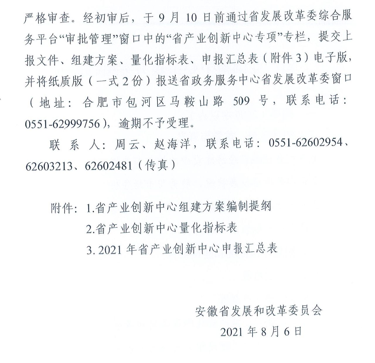 关于组织开展2021年安徽省产业创新中心申报工作的通知