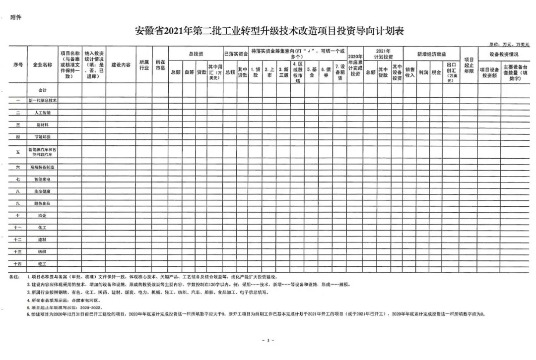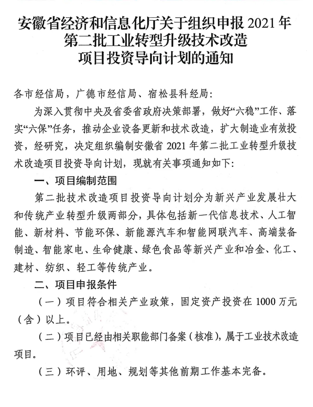 2021年安徽省第二批工业转型升级技术改造项目投资导向计划申报开始